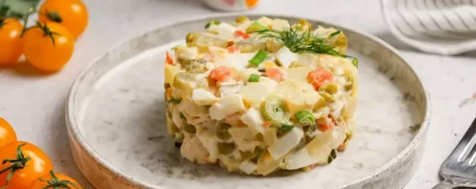 Cea mai asemănătoare cu această salată este „Stolichny”. Aceasta include, de asemenea, cartofi, morcovi, ouă, mazăre și alte ingrediente familiare.